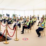 From the dusty grounds of the construction plant, Eventeam built a high-quality marquee of 400 sqm with transparent walls and white ceiling, all-metal elements covered with canvas.The furniture was of high quality, the excellent audiovisual system covered the audio and video needs, and the ambience was extremely pleasant with a 6 powerful air conditioning machines assuring the ideal temperature and the needed hygienic standards with germicidal lamps in the filters.