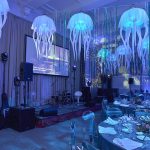 Eventeam included neon decoration mingled with submarine elements such as jellyfish hanging from the ceiling, starfish and shells on the tables and hanging over the chairs. Special lighting created the immersive underwater feeling accompanied by deep-sea sounds. A professional video display and photo coverage together with our special DJ have ensured that the goals of the evening were successfully achieved.