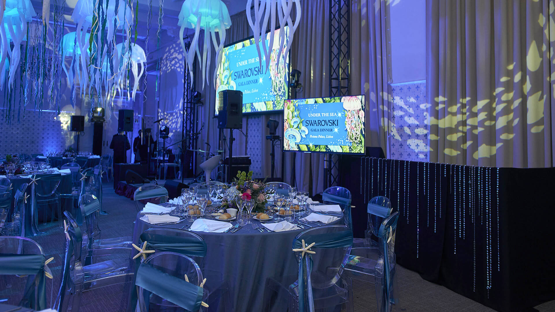 Swarovski held their Iberian Conference in Lisbon and wanted to dress the venue for the Gala Dinner accordingly to a very specific thematic evening: “Under The Sea”.